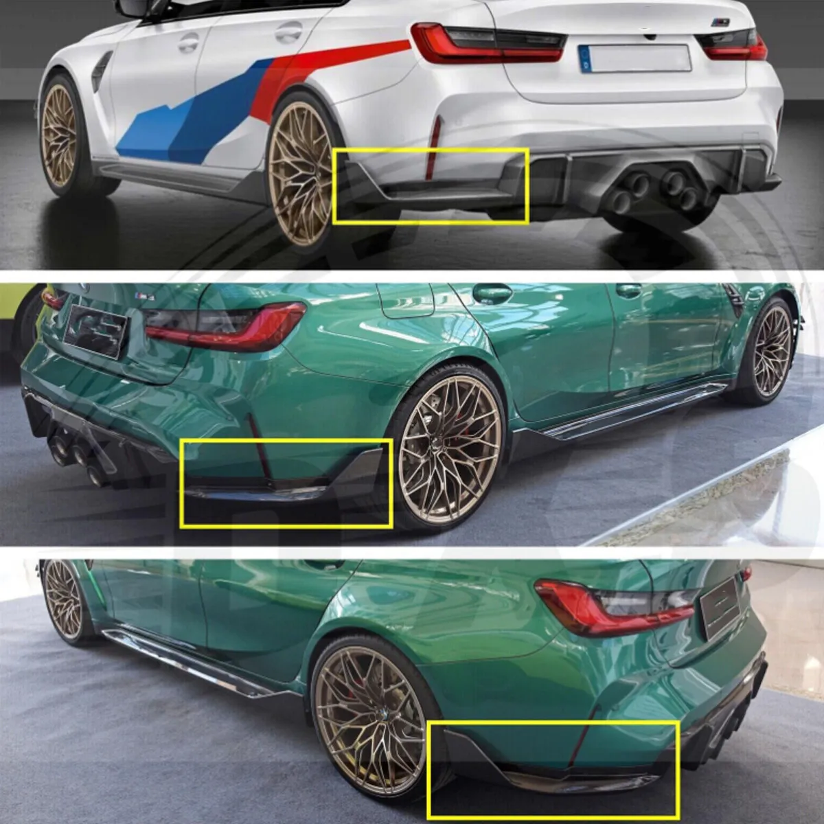 Bmw G80 M3 MP style gloss black rear splitters abs plastic